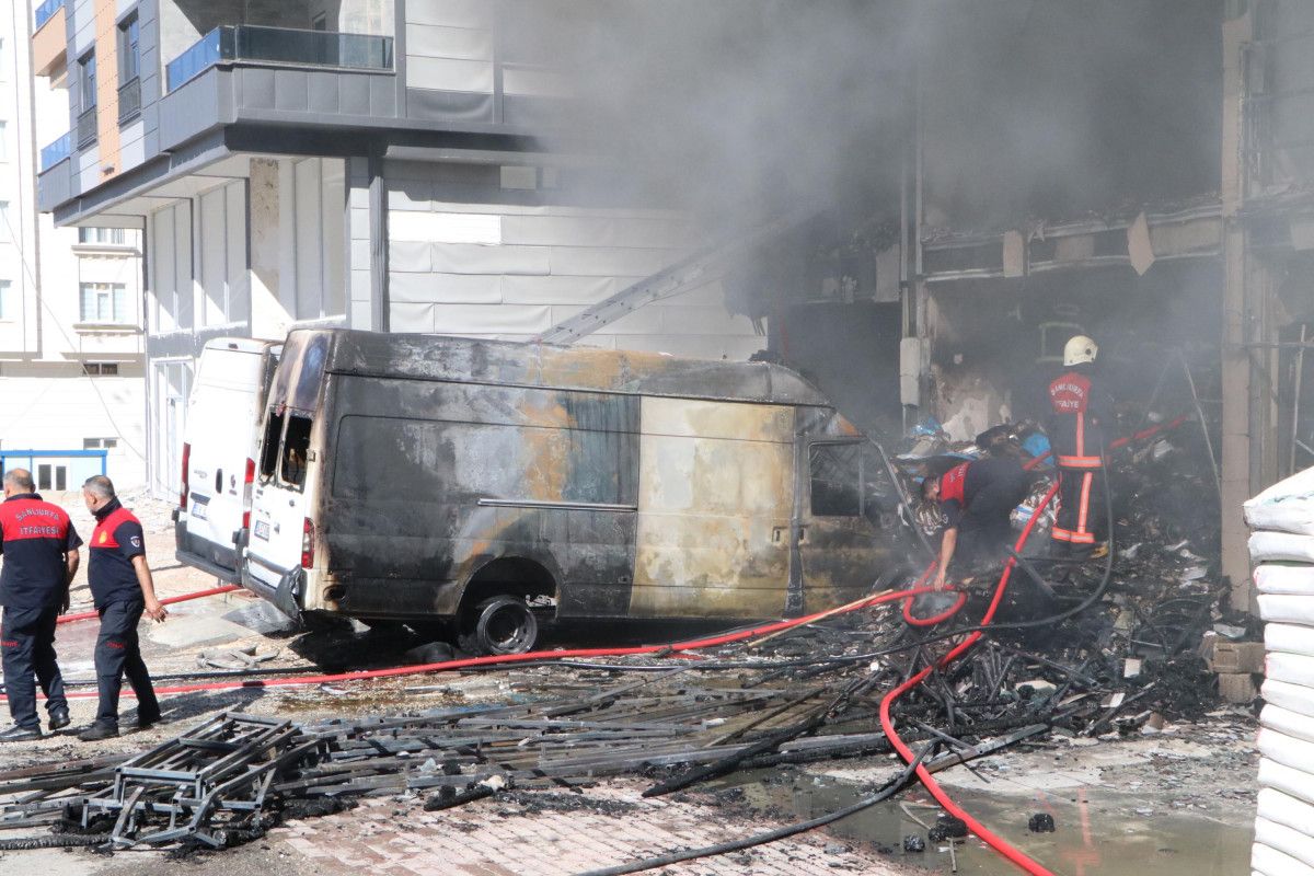 İş yerinin yanı sıra üst katındaki ev ile park halindeki 2 minibüsün hasar gördüğü yangınla ilgili inceleme sürüyor.