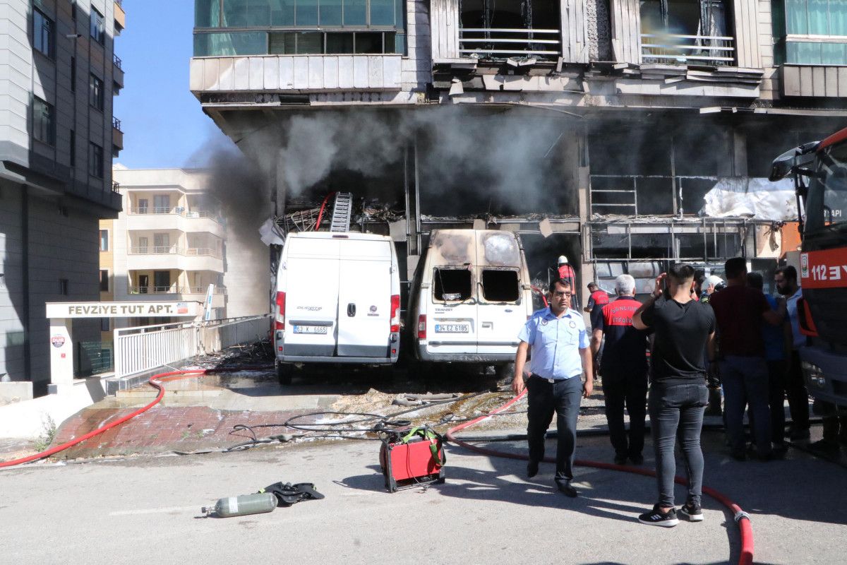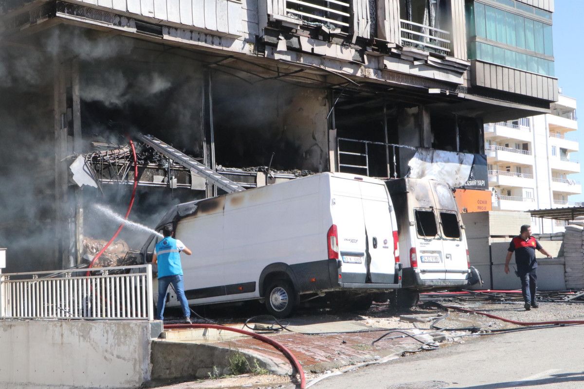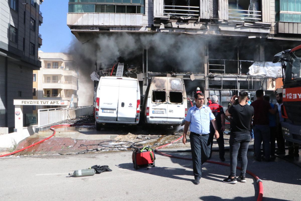 İş yerinin yanı sıra üst katındaki ev ile park halindeki 2 minibüsün hasar gördüğü yangınla ilgili inceleme sürüyor.