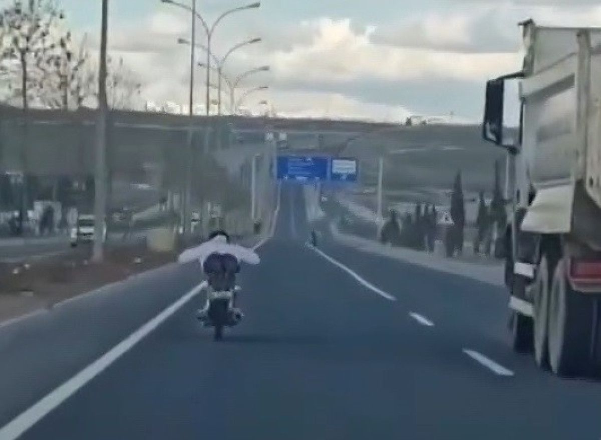 Şehirler Arası Otobüs Terminali ile Evren Sanayi Sitesi’ni birbirine bağlayan Kuzey-Batı çevre yolunda ilerleyen 63 AEC 196 plakalı motosikletin sürücüsü, tehlikeli hareketler yaptı.