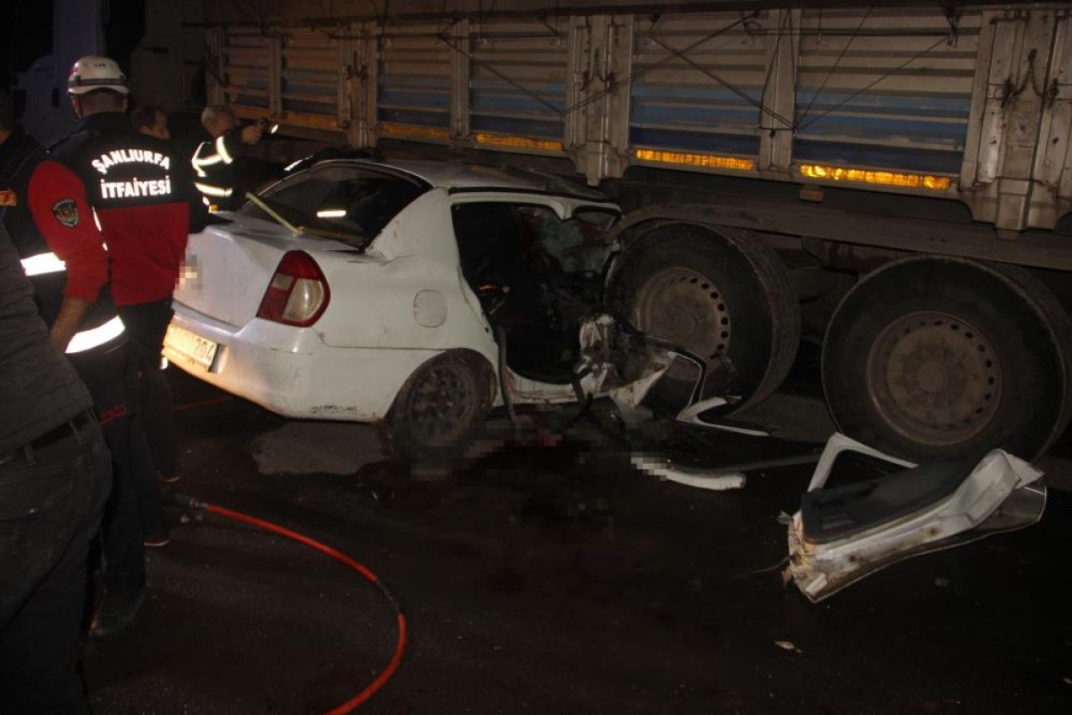 Akşam saatlerinde Şanlıurfa-Mardin karayolunun Çamlıdere kırsal mahallesi yakınlarında, Şanlıurfa’dan Viranşehir istikametine ilerleyen Mehmet Sümer idaresindeki 47 ACU 204 plakalı otomobil, kavşaktan dönüş almaya çalışan Yusuf Ç.’nin kontrolündeki 47 AAH 185 plakalı tırın altına girdi.