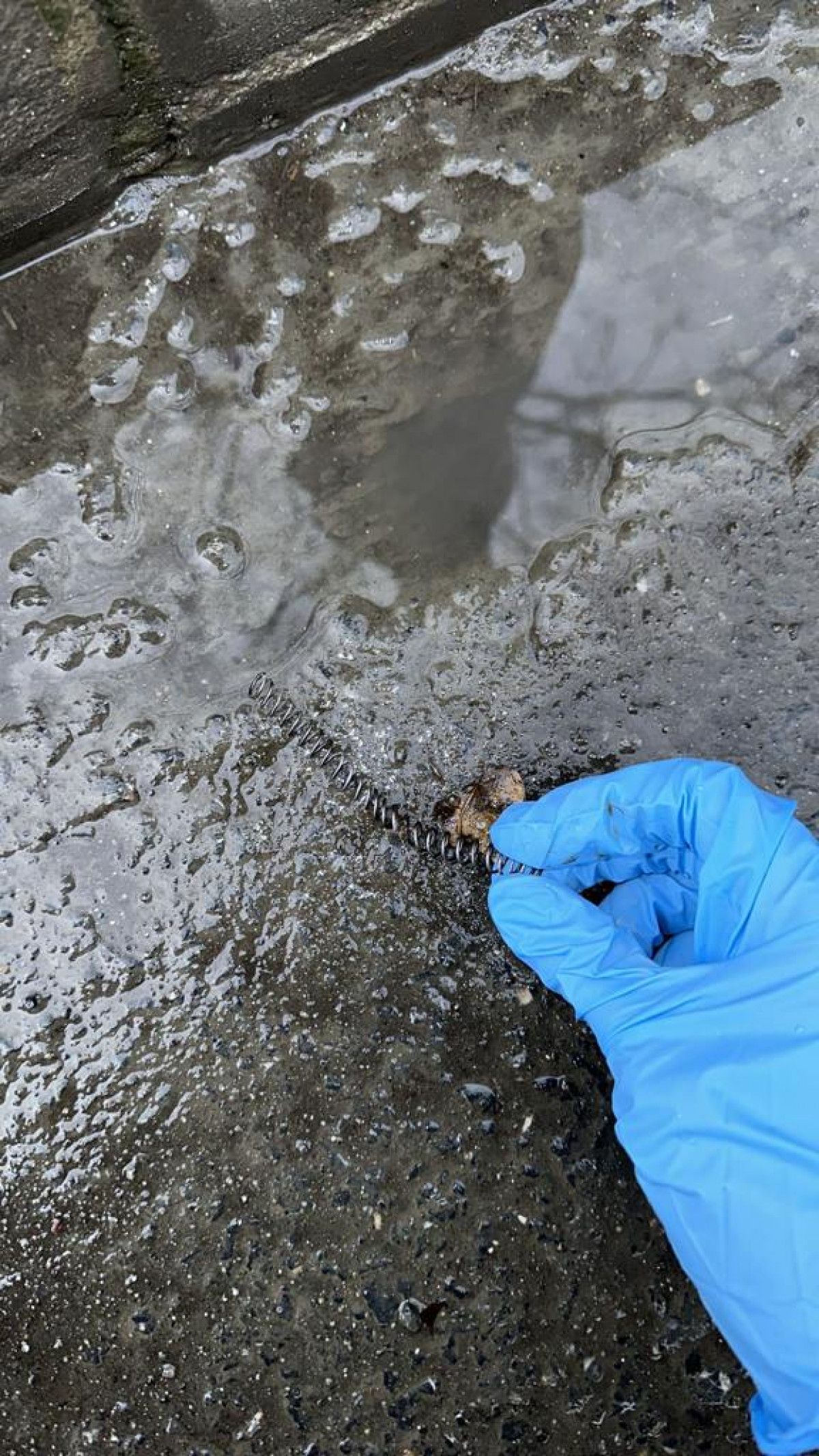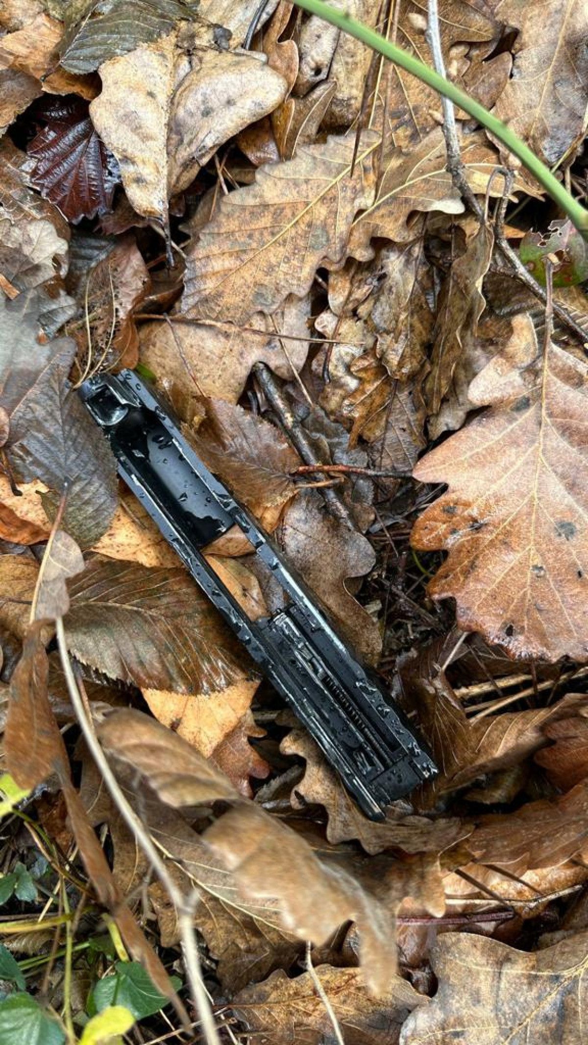 Yol kenarına atılan silahlardan birinin bulunduğu anlar kameraya yansıdı.