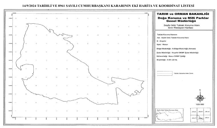 Kırşehir’in Mucur İlçesi’nde bulunan Seyfe Gölü Tabiatı Koruma Alanı sınırlarının yeniden belirlenmesine ilişkin Cumhurbaşkanı kararı Resmi Gazete’de yayımlandı.