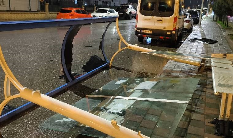 Şiddetli rüzgar nedeniyle Veyselkarani Mahallesi 1903. Sokak’ta bulunan otobüs durağı devrildi. Bu sırada durakta bekleyen kimse olmadığı öğrenildi.