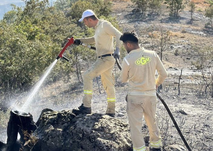 Bölgede soğutma çalışmaları sürerken, 50 dönüm alanın zarar gördüğü belirtildi.