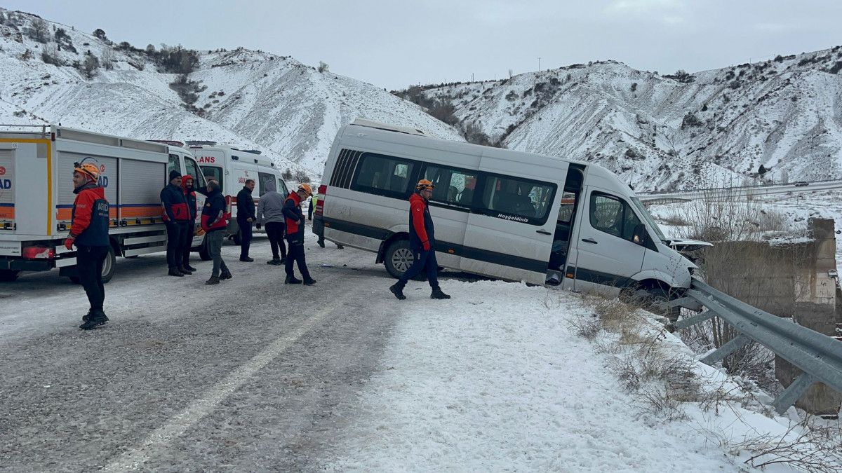 E.D. kontrolündeki araç ve henüz sürücüsü öğrenilemeyen bir yolcu minibüsü, kayganlaşan yolca direksiyon hakimiyetini kaybederek çarpıştı.