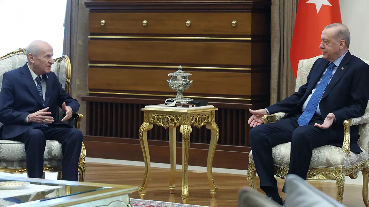 AKP’li Cumhurbaşkanı Recep Tayyip Erdoğan, MHP Genel Başkanı Devlet Bahçeli’yi kabul etti.
