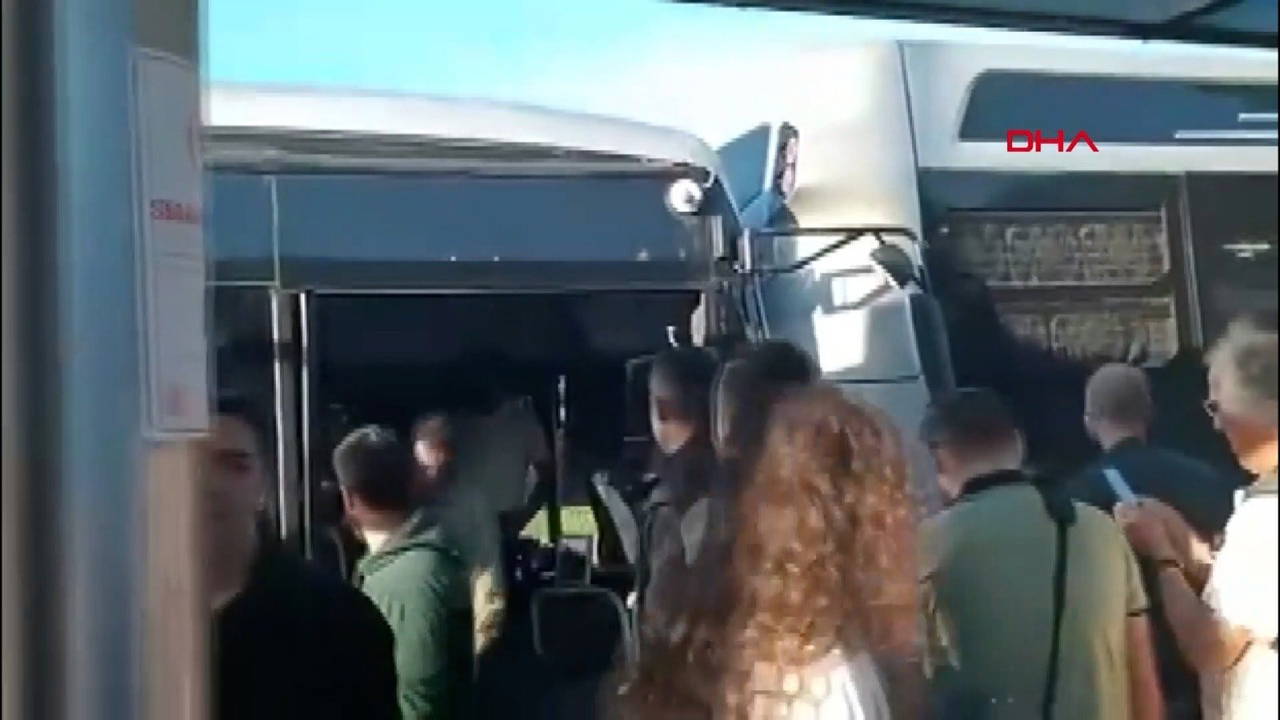 İstanbul Kadıköy’de bir metrobüs, Acıbadem metrobüs durağında bekleyen bir metrobüse arkadan çarptı.
