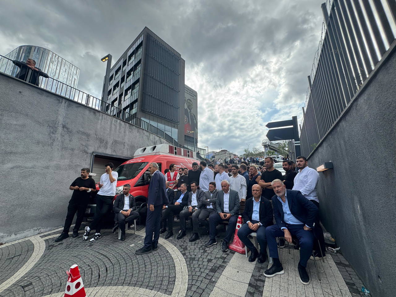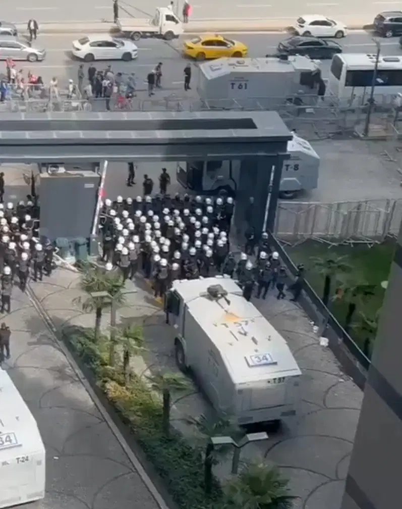 CHP’liler dışında çok sayıda yurttaş da demokrasiye sahip çıkmak için il binası önüne geldi. SOL Parti, TİP, EMEP ve birçok siyasi partinin yöneticisi, kayyuma karşı CHP İstanbul İl Başkanlığı’nın önünde hazır bulundu.