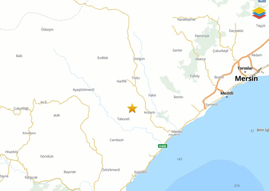 AFAD, Mersin’in Erdemli ilçesinde saat 16:12 sularında 3.9 büyüklüğünde deprem meydana geldiğini duyurdu.