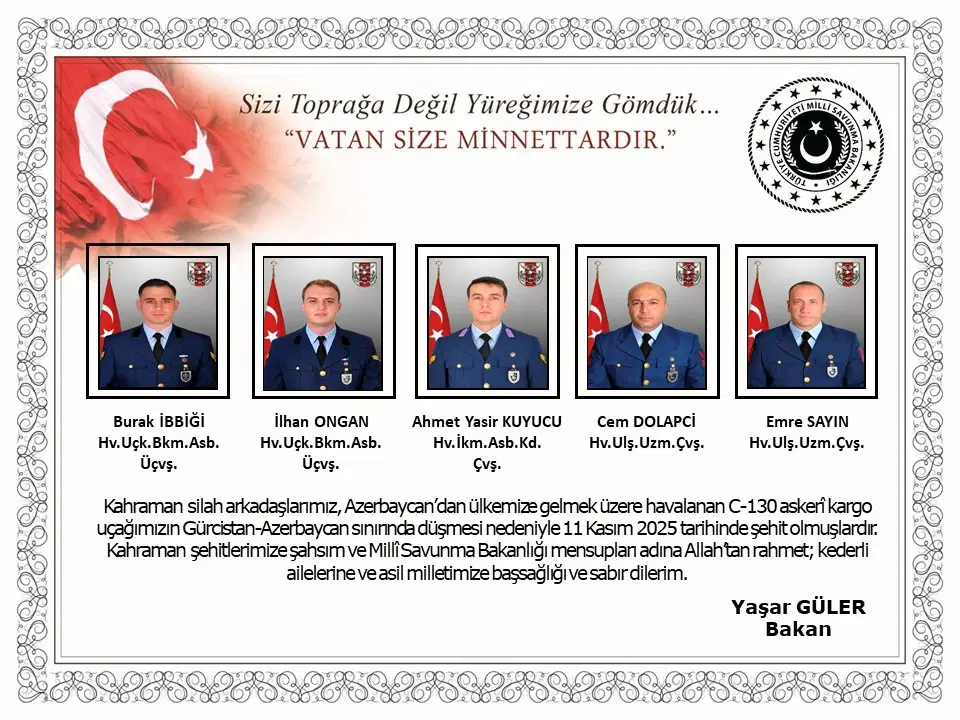 Milli Savunma Bakanlığı (MSB), dün Azerbaycan’dan Türkiye’ye gelmek üzere olan TSK’ye ait C130 kargo uçağının düştüğünü duyurmuştu.