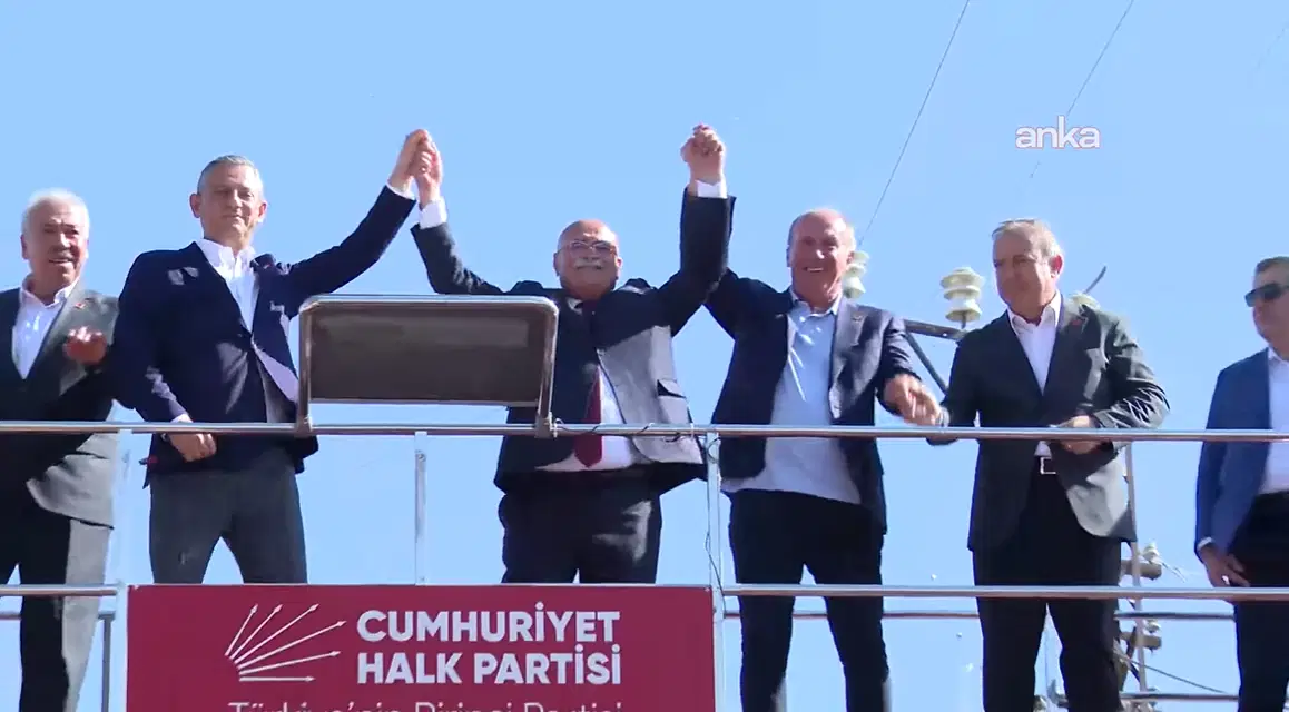 Özgür Özel, Yozgat Bahadın Cumhuriyet Meydanı’nda rozet takma törenine katıldı. Mitingde CHP’ye katılan Muharrem İnce de yer aldı.