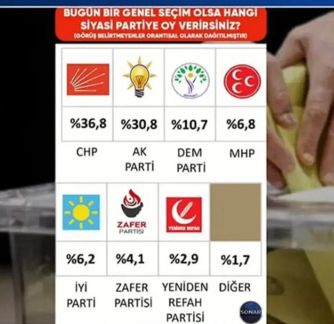 31 Mart Yerel Seçimlerinde en doğru tahminleri yapan Sonar Araştırma, yeni bir genel seçim anketi yaptı.