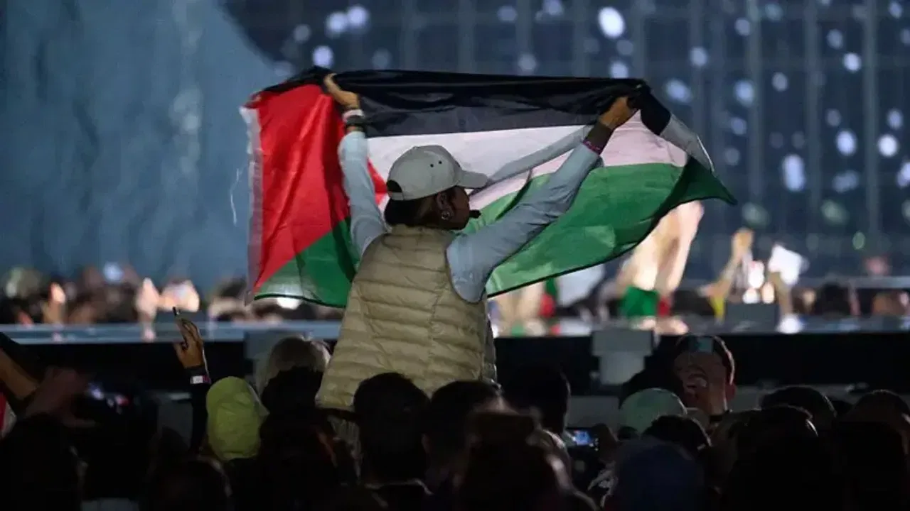 Seyirciler arasında Filistin bayrağı açan bazı izleyiciler, sanatçıyı ıslıklarla yuhaladı.