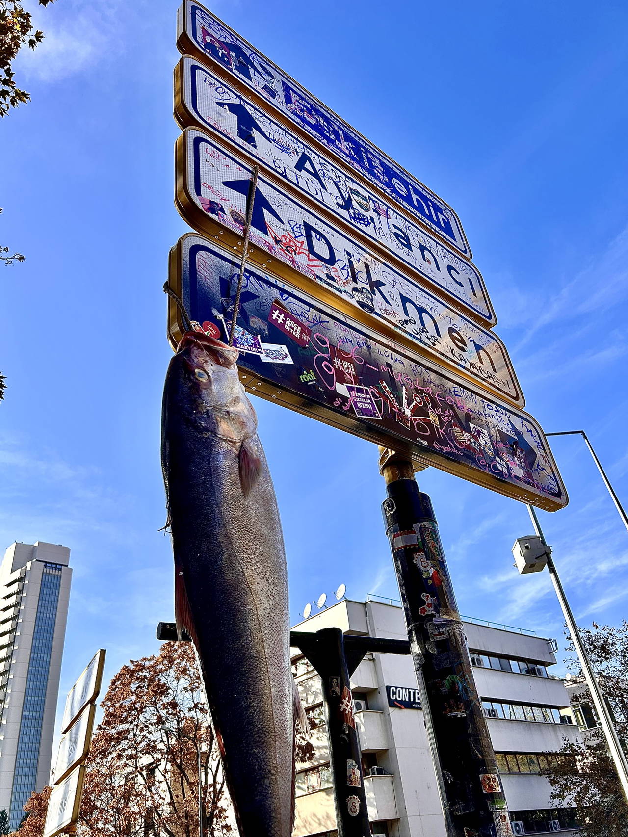 Gençlerin asılarak fotoğraf çekindiği tabela kısa sürede bir akım haline dönüştü. Kızılay Tabelası akımına Ankara’da balık restoranı işleten kardeşler de katıldı.