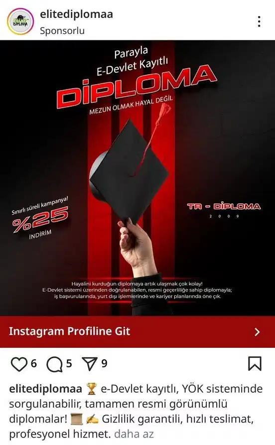 Reklamlarda kullanılan ifadeler oldukça iddialı: “Resmi geçerliliği olan diploma”, “e-Devlet sistemi üzerinden doğrulanabilir”, “iş ve yurtdışı başvurularında kullanılabilir”.