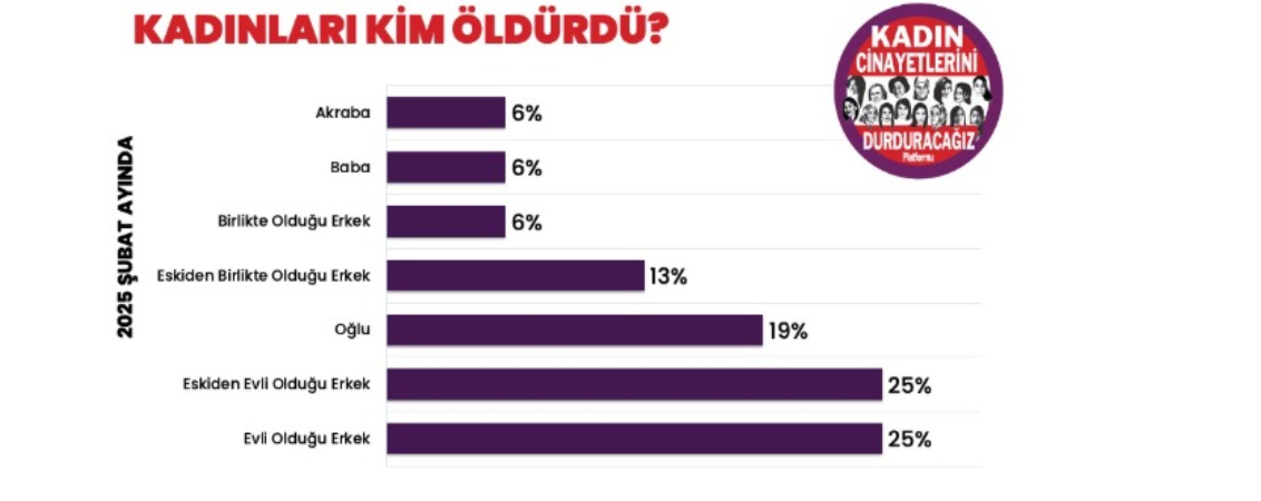 Şubat ayında öldürülen 16 kadının 4’ü evli olduğu erkek, 4’ü eskiden evli olduğu erkek, 3’ü oğlu, 2’si eskiden birlikte olduğu erkek, 1’i birlikte olduğu erkek, 1’i babası, 1’i akrabası tarafından öldürüldü.