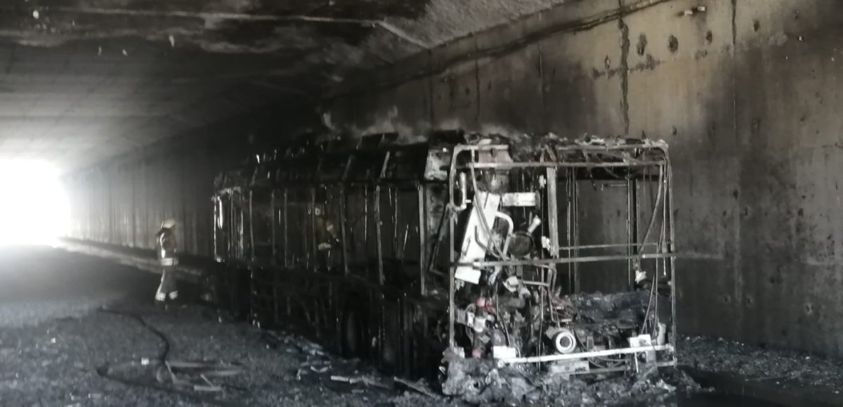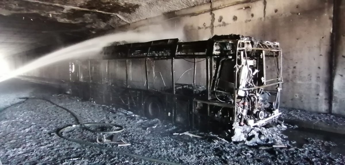 Faciadan dönülen olayda itfaiye ekipleri yanan aracı söndürürken, otobüs adeta demir yığınına döndü.