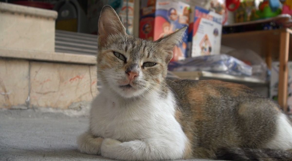 Çocuklar ağlayarak kediyi esnafa götürdü