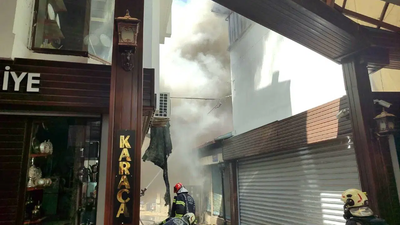 Tarihi Kaleiçi Çarşısı‘ndaki hırdavat ile mutfak malzemeleri deposunda, saat 15.00 sıralarında yangın çıktı. Alevler kısa sürede büyüdü.