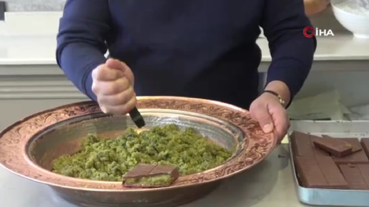 Kilimci, çikolatanın içindeki özel harcın, fıstık ve kadayıfın yoğrulup harmanlanarak oluşturulan cennet çamuru olduğunu vurguladı.