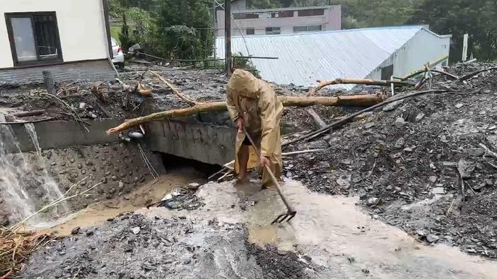 Aşırı yağışların en yoğun olduğu Nantou ilçesine bağlı Ren’ai kasabasında çok sayıda toprak kayması yaşanırken bir benzin istasyonu kullanılamaz hale geldi.