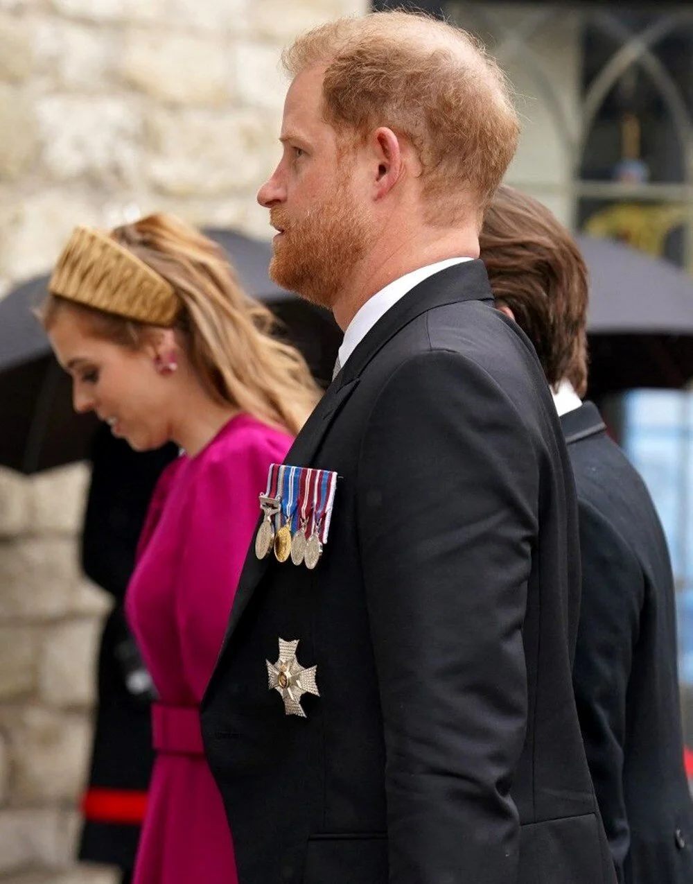 Harry, merasimin yapıldığı Westminster Abbey’e merasimde resmi misyonları olmayan kuzenleri Zara Tindall, Prenses Beatrice ve Prenses Eugenie ile birlikte girdi.