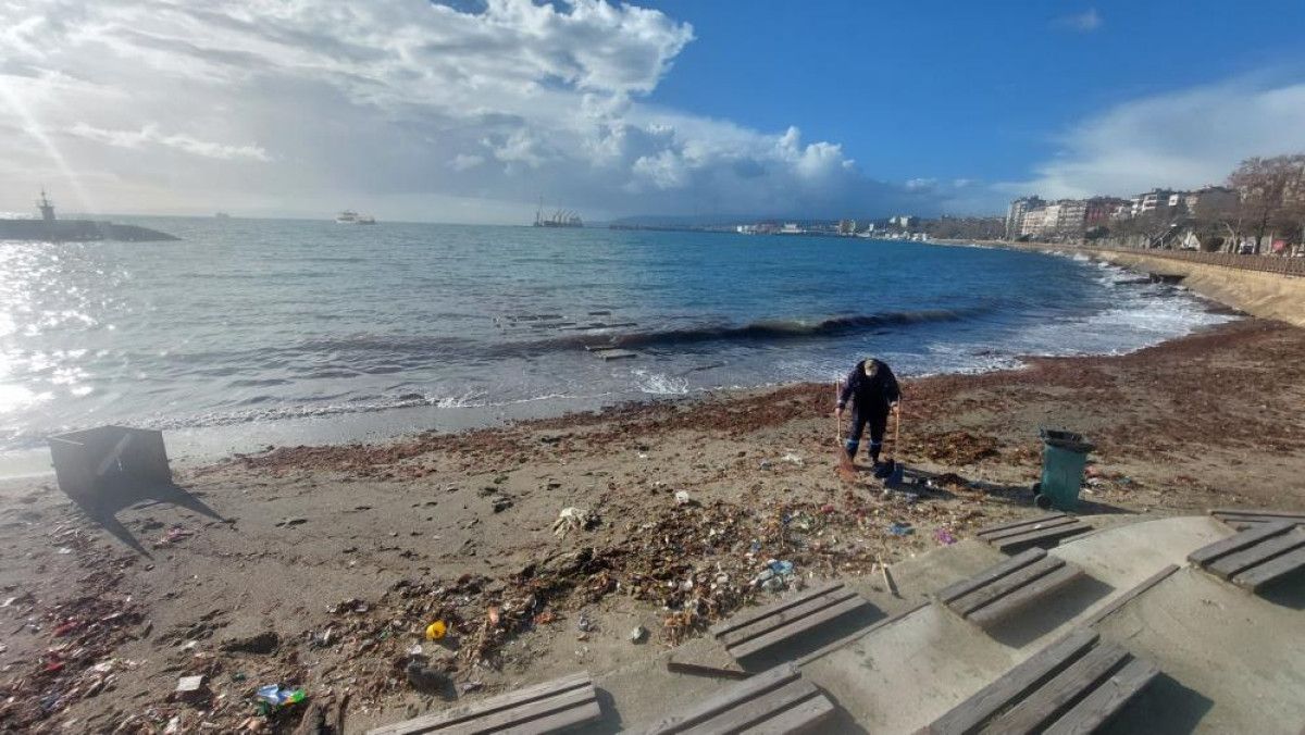 Temizlik personelince, kızıl yosunlarının biriktiği alanda da temizlik çalışması başlatıldı.