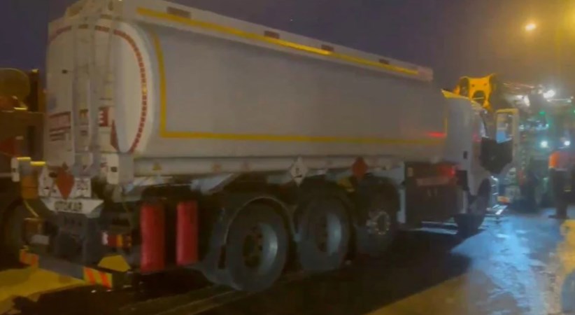 İstanbul’da Esenyurt TEM Otoyolu Hadımköy gişeler mevkiinde, yakıt tankeri kamyona arkadan çarptı.
