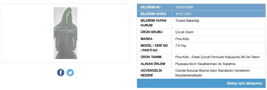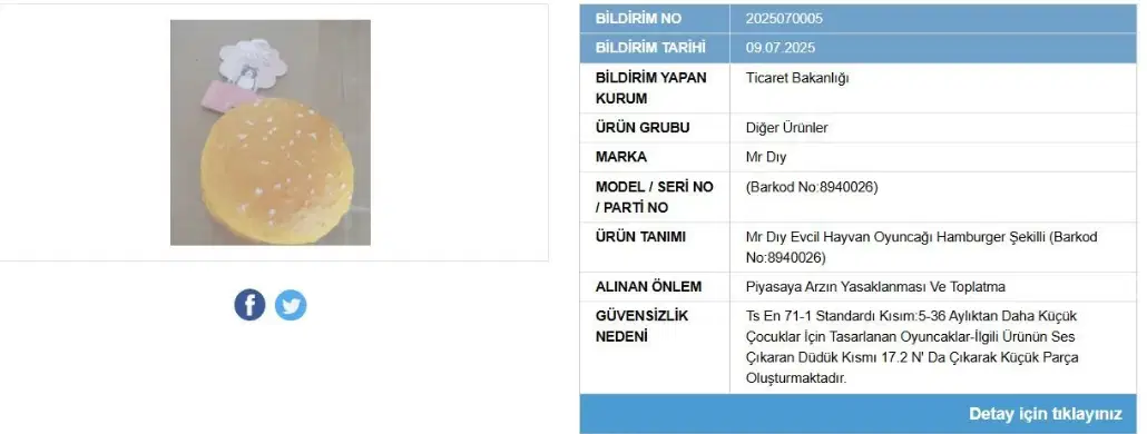 Ticaret Bakanlığı, piyasa gözetimi ve denetimi faaliyeti gerçekleştiren yetkili kuruluşlar tarafından güvensizliği tespit edilen ürünleri Güvensiz Ürün Bilgi Sistemi (GÜBİS) üzerinden ilan etmeyi sürdürüyor.