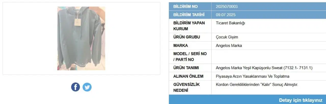 Toplatma kararı alınan ürünler ve nedenleri şöyle sıralandı: