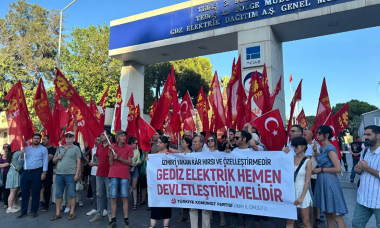 TKP İzmir İl Örgütü’nün çağrısıyla dün saat 19.00’da, Bornova’da bulunan GDZ Elektrik Genel Müdürlüğü önünde toplanan İzmirliler, “Gediz Halka Hesap Verecek”, “Doğanın katili Holding Düzeni” sloganlarıyla Genel Müdürlük önüne yürüdü.