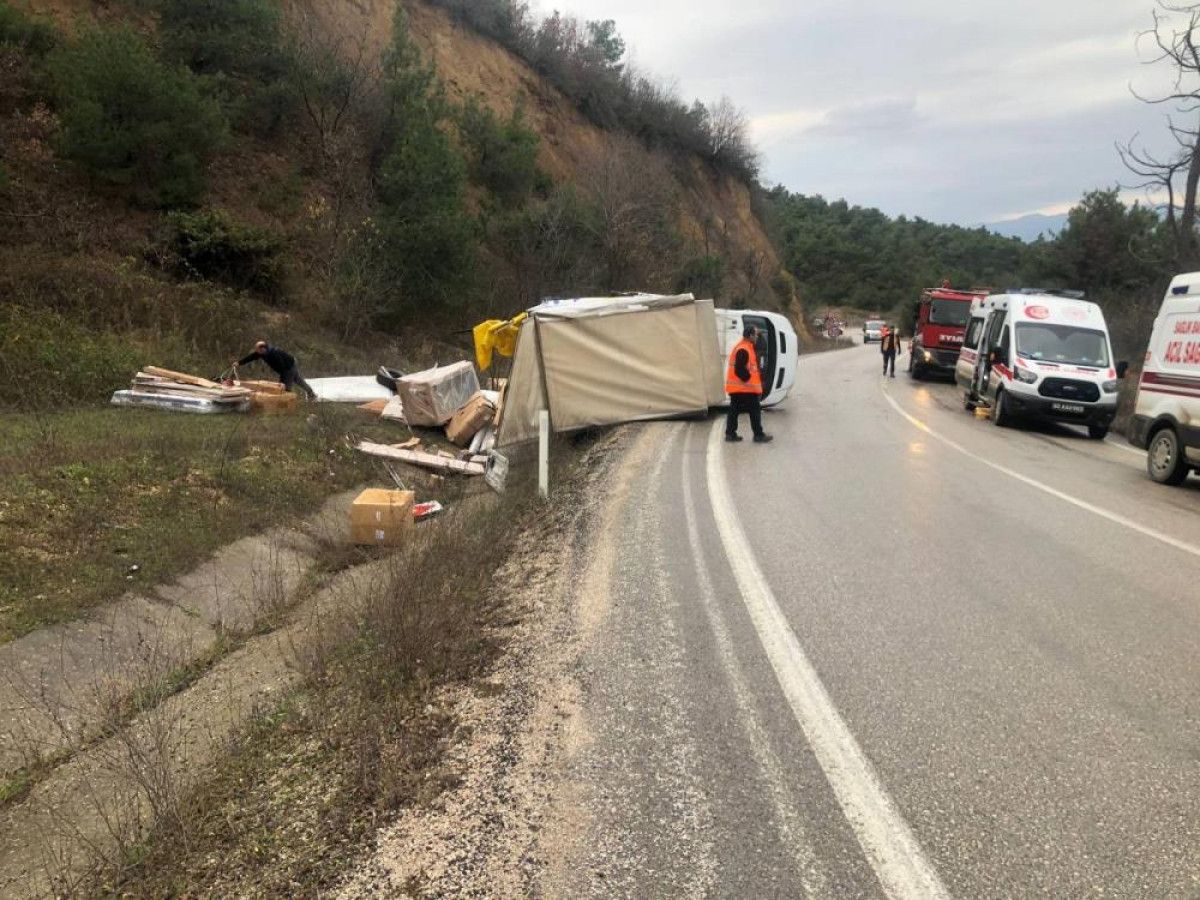 Çarpışma sonucunda kamyonet yan yatarken, ticari araç ağır hasar aldı.