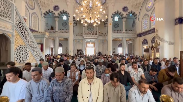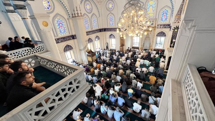 Yoğun iştirak nedeniyle cami önünde insan kuyruğu oluşurken, caminin dolması nedeniyle bayram namazı 2 defa kılındı.