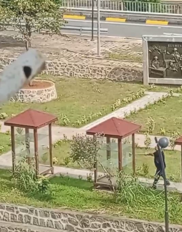 Sürmene ilçesindeki sahilde yer alan Bıçak Tanıtım Parkı’nda, sabah saatlerinde parka gelen E.C., bilinmeyen nedenle elindeki balyozla ‘Sürmene’ yazılı elektrikli tabela ve hediyelik eşya ürünlerinin sergilendiği vitrin camlarını balyozla kırdı.
