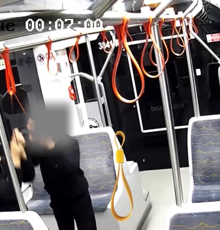 Kestikleri tutamaklara tutunarak sallanan çocukların koltuklara ve tramvayın çeşitli yerlerine de zarar verdiği anlar tramvayda bulunan kameralara yansıdı.