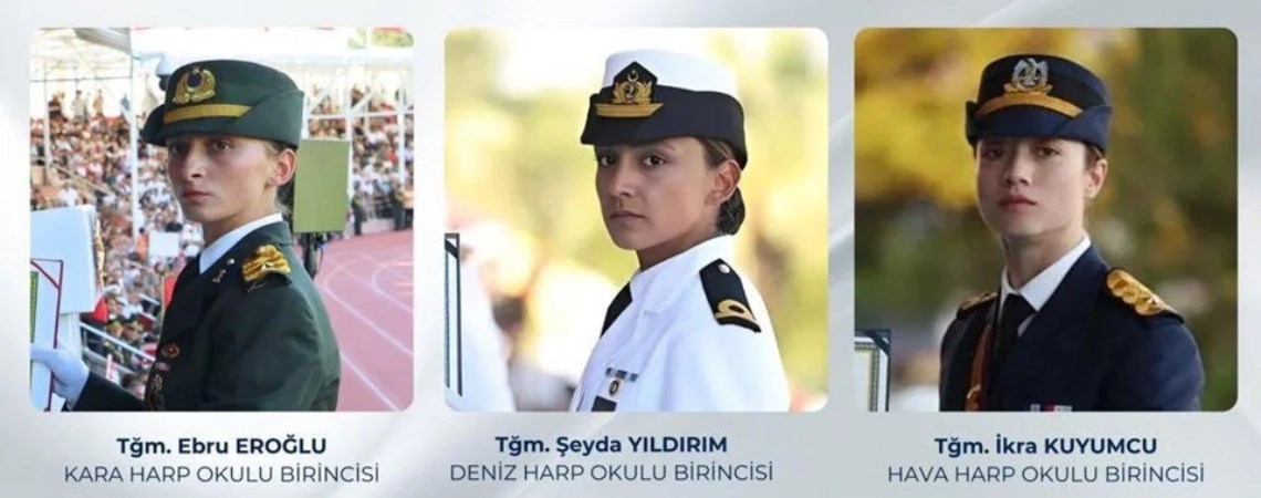 Ankara’da Kara Harp Okulu’nda, Teğmen Ebru Eroğlu, İstanbul’da Deniz Harp Okulu’nda Teğmen Şeyda Yıldırım ve Hava Harp Okulu’nda Teğmen İkra Kuyumcu dönemlerini birinci bitirdi. Birinci kızlar, diplomalarını AKP’li Cumhurbaşkanı Recep Tayyip Erdoğan’dan aldı.
