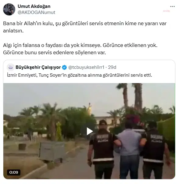 “Bana bir Allah’ın kulu, şu görüntüleri servis etmenin kime ne yararı var anlatsın. Algı için falansa o faydası da yok kimseye. Görünce etkilenen yok. Görünce bunu servis edenlere söylenen var.”