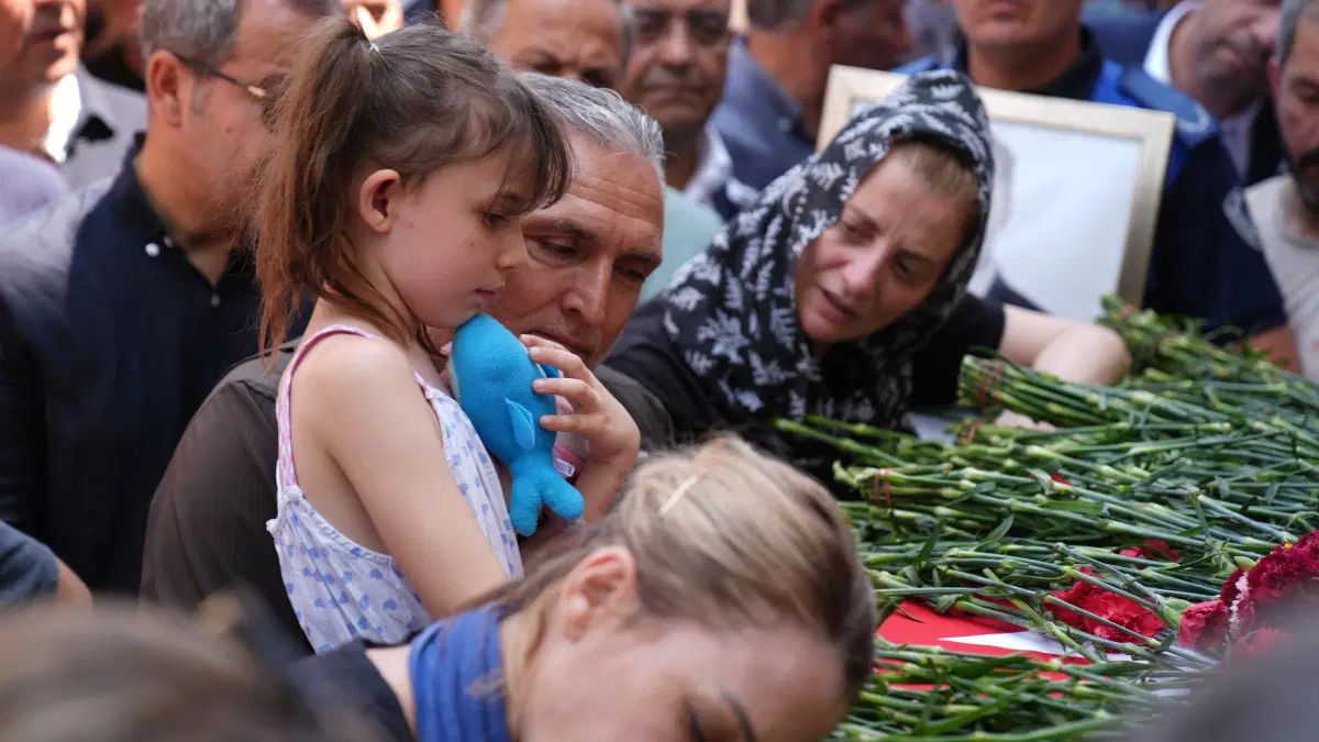 Cenaze törenine ellerinde oyuncakları ile gelen Zeyrek’in ikiz kızları, oyuncaklarını babalarının mezarına koymak için izin istedi.
