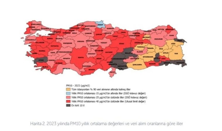2023 yılı için PM10 ortalamalarına bakıldığında, havası temiz olarak nitelenen tek il Sinop olarak belirlendi.