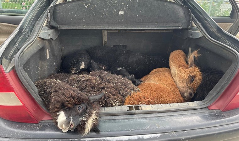 Aramada aracın çeşitli yerlerine gizlenmiş 23 uçan sincap, 3 alpaka, 3 kanguru, 12 papağan, 1 geyik olmak üzere 42 hayvan ele geçirildi.