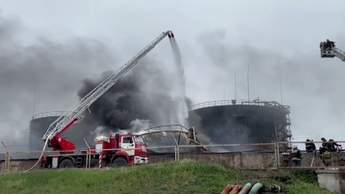 Diğer tanklarda durum denetim altına alındı. Yangın söndürme çalışmaları devam ediyor, alevlerin başka tanklara sıçraması engelleniyor ve tanklar soğutuluyor. Tüm güvenlik ve kurtarma takımları olay yerinde. Yangının alanı yaklaşık bin metrekare. Sivil altyapıya yönelik bir tehdit yok.