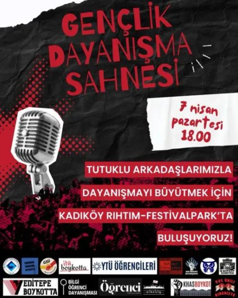 İstanbul’daki üniversite öğrencileri, İBB Başkanı ve CHP’nin Cumhurbaşkanı Adayı Ekrem İmamoğlu için düzenlenen protestolara katıldıkları için tutuklanan öğrenciler için 7 Nisan Pazartesi günü saat 18.00’de Kadıköy’de ‘Gençlik Dayanışma Sahnesi’nde buluşacak.