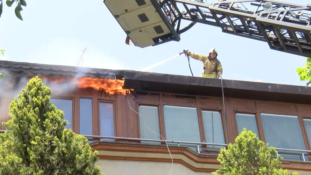 Necmi Özcan, “Burada yangın çıktı, sağ olsun itfaiye hemen müdahale etti. Çatı kısmındaki yangın söndürülmek üzere. İnşallah bir zayiat yoktur” dedi.
