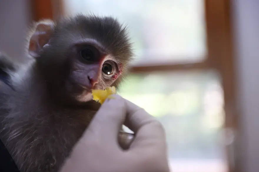 Antalya’da uyuşturucu operasyonu düzenlenen evde bulunarak el konulan rhesus cinsi maymun yavrusu “Portakal”, getirildiği doğal yaşam parkında sağlık kontrolünden geçirildikten sonra rehabilitasyon sürecine alındı.