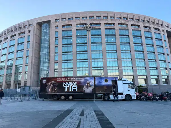 Türkiye’nin 81 ilinde zaman zaman bu tür çalışmalarda kullanıldığı belirtilen TIR’ın ne kadar süreyle adliye önünde kalacağı ise bilinmiyor.