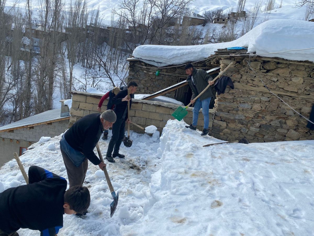 Bahçesaray’a 40 kilometre uzaklıkta bulunan Çatbayır Mahallesi’nde oturanlar daha önce yağan kar ile toprak damlı taş ve kerpiç evlerin damlarında biriken karı temizleme mesaisi yaptı.