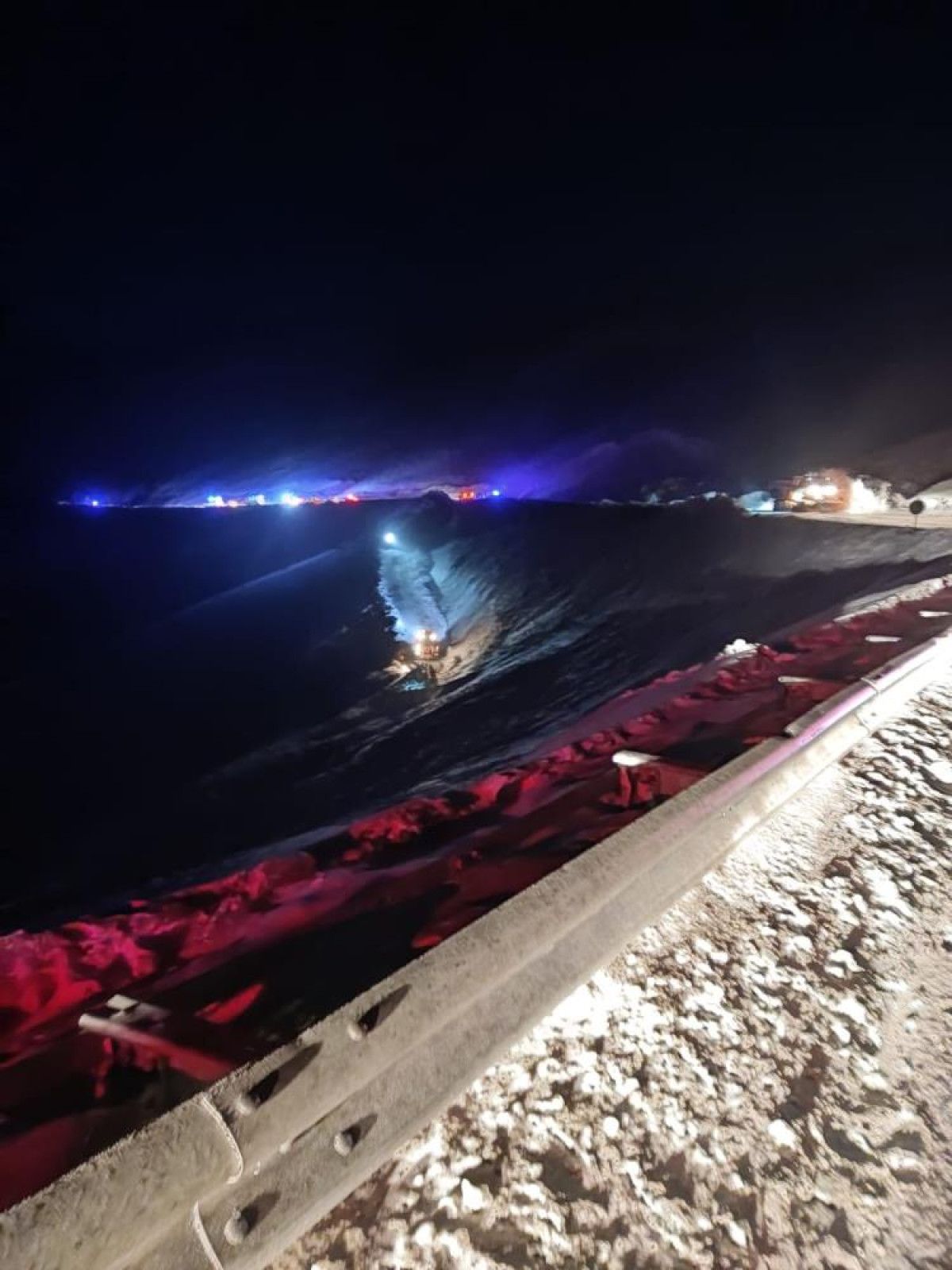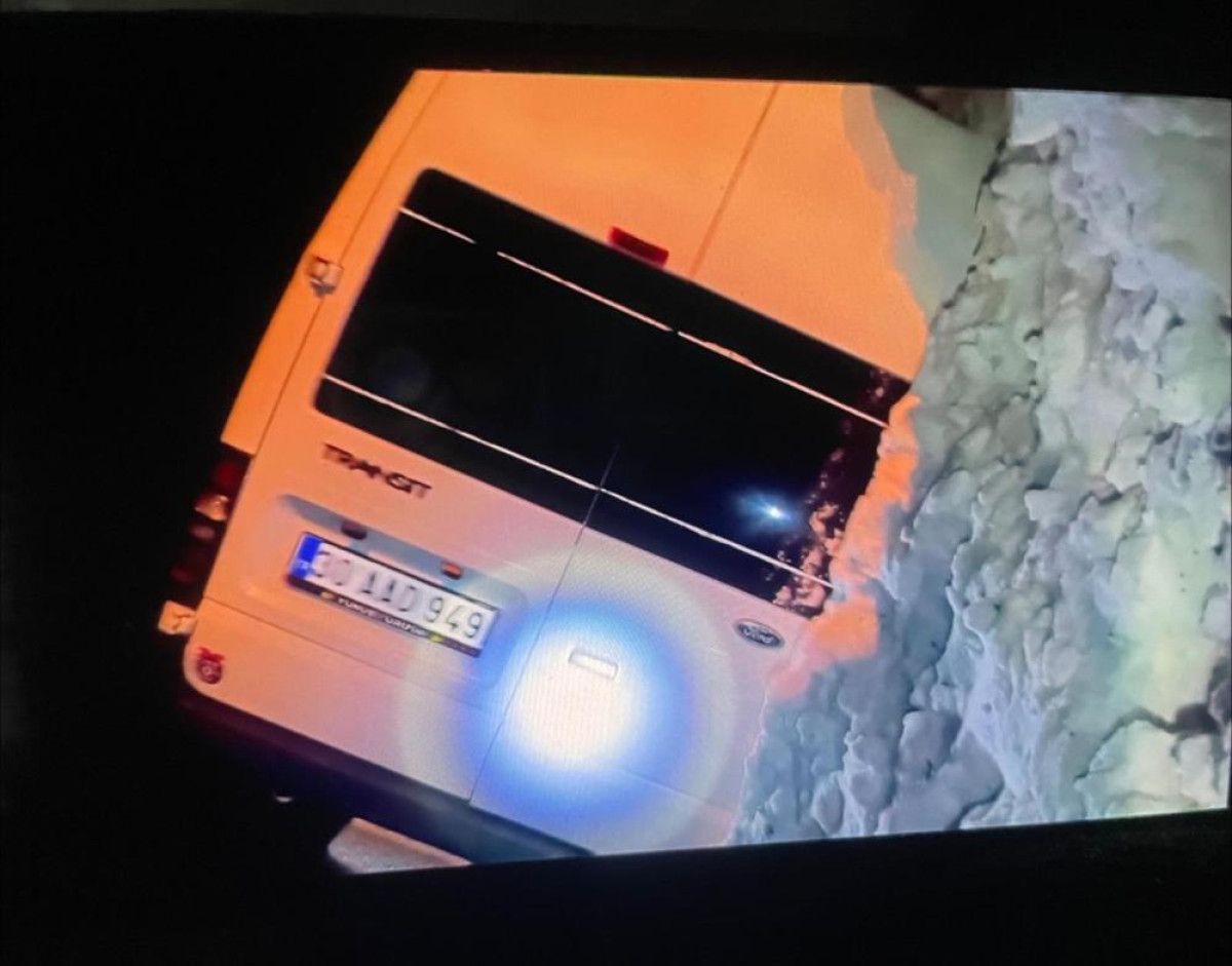 Çığın sürüklediği minibüs, şarampole yuvarlandı