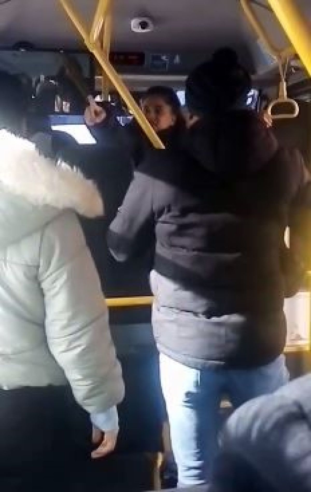 Minibüste kocasının sevgilisine küfürler savuran kadın, hıncını alamayarak tokat attı, yetmedi saçını çekip kadını yere attı.