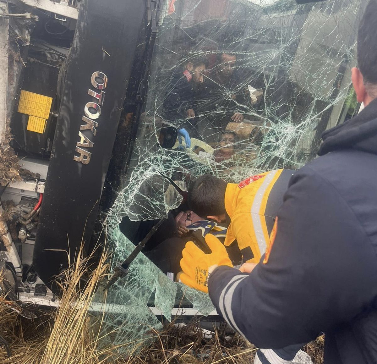Yaralılar, ihbarla bölgeye gelen itfaiye, AFAD, jandarma ve sağlık ekipleri tarafından araçtan çıkarıldı.