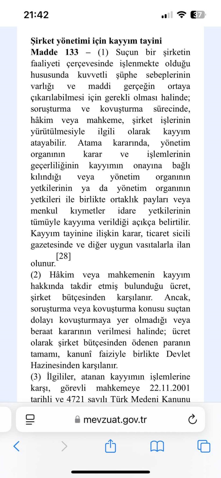 Avukat Onur İste sosyal medyada paylaştığı açıklamasında, “CMK m.133’e göre, yürütülen bir suç soruşturması için herhangi bir siyasi partiye kayyım atanamaz. Siyasi partiler şirket değildir” ifadelerini kullandı.